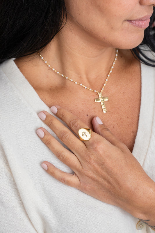 Cross Signet Ring Gold