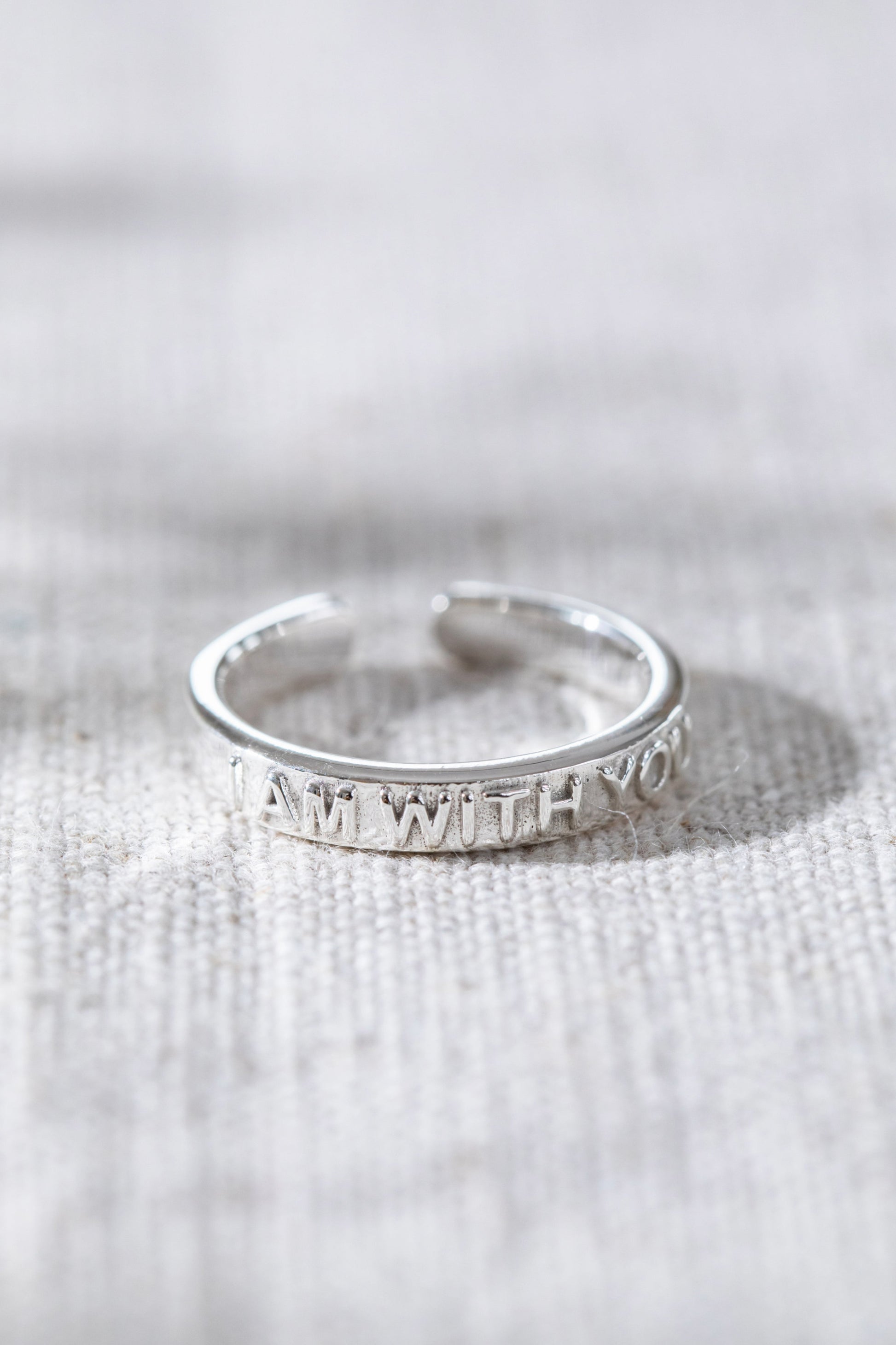 Adjustable I am with you engraved ring. Bible inspired on Matthew 28:20.